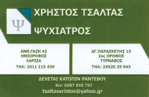 Διευθυντής στην κλινική Άγιος Νικήτας, 13ο χλμ. Λάρισας - Τυρνάβου, τηλ.: 2410831700.Δέχεται κατόπιν ραντεβού. 2η Διεύθυνση: Αγίας Παρασκευής 15, Τύρναβος.